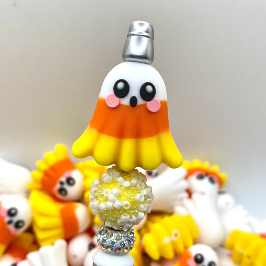 Candy Corn Ghost 3D Ghost Silicone Focal Beads